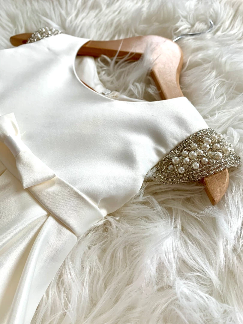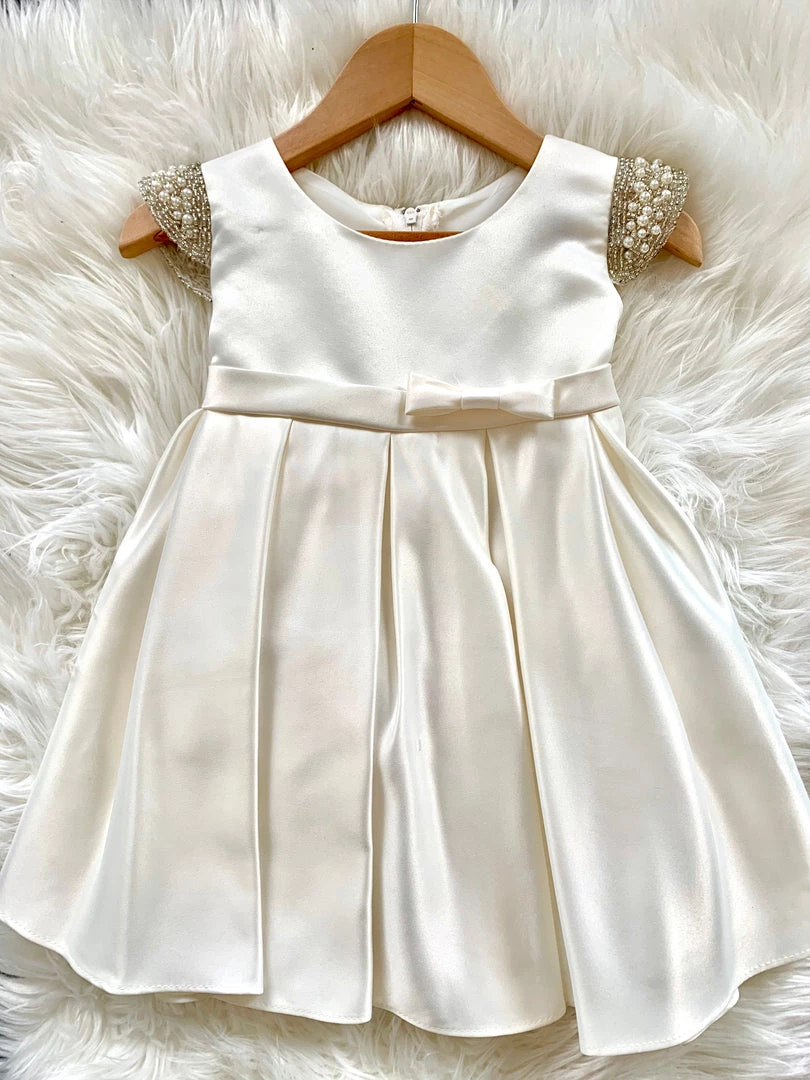 Girls White pearl cap sleeve baptismal dress imported from the USA.