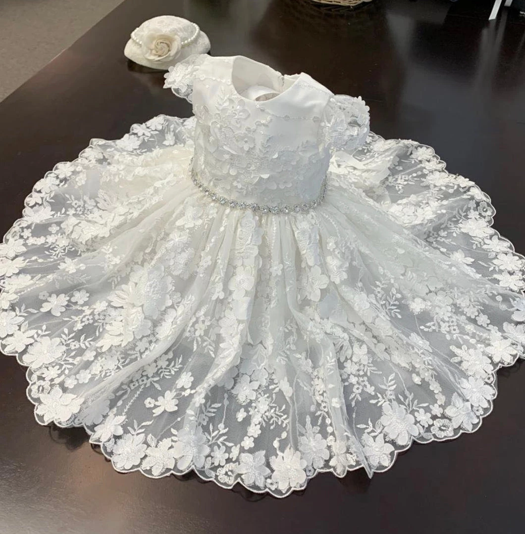 Teter Warm White Floral Lace with Cap Sleeve. Dress includes diamond belt.