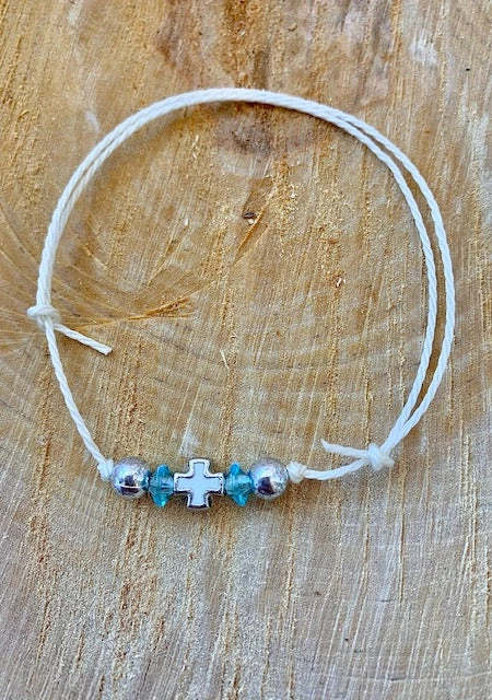 Martyiko includes 2 silver beads, 2 blue beads, and white cross.