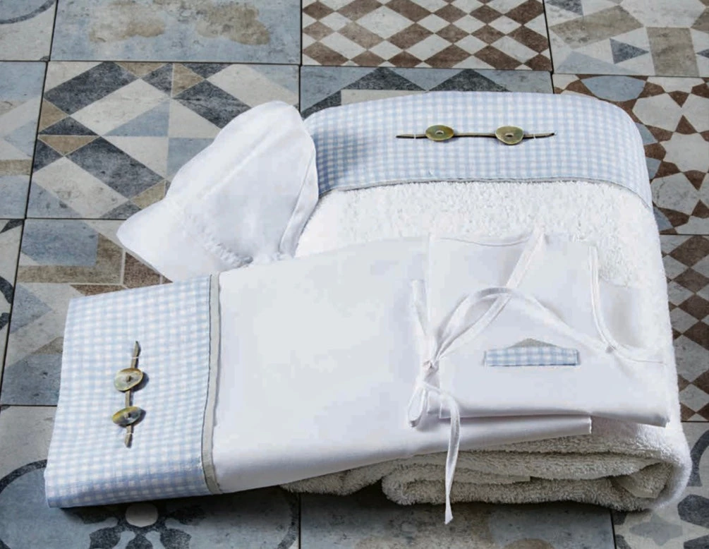 Boys Ladopana Set made from 100% Cotton made in Greece. Ladopano set includes embellished large towel, a small hand towel, an embellished oil sheet, and undergarments to absorb oil (undershirt, underwear, and hat)