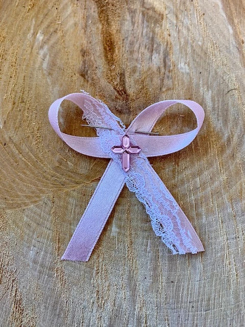 Martyiko includes baby pink ribbon, white lace ribbon, and pink cross.