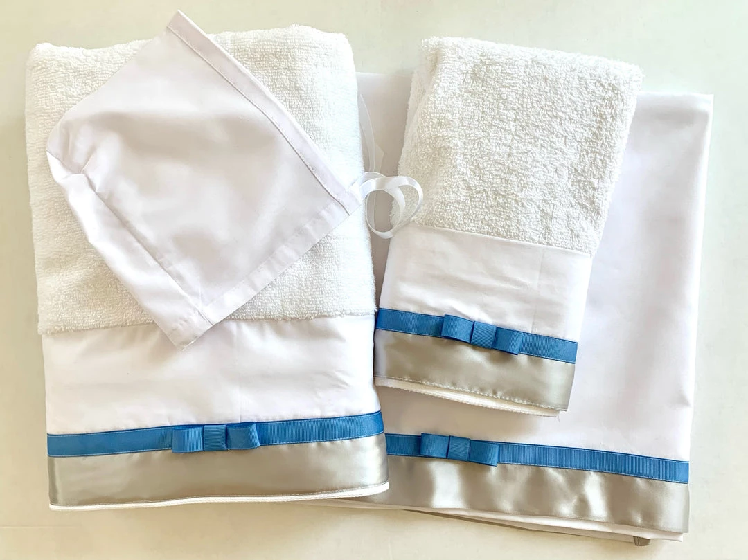Custom Made Ladopano Set. Set includes one (1) big bath towel, one (1) Oil Sheet, one (1) Hand Towel, one (1) onesie, and one (1) oil hat.