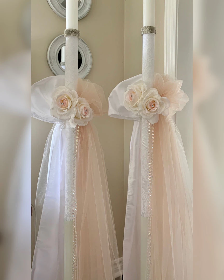 Blush Pink Rose Lambatha on 3ft candle. Price shown is for 2 candles.