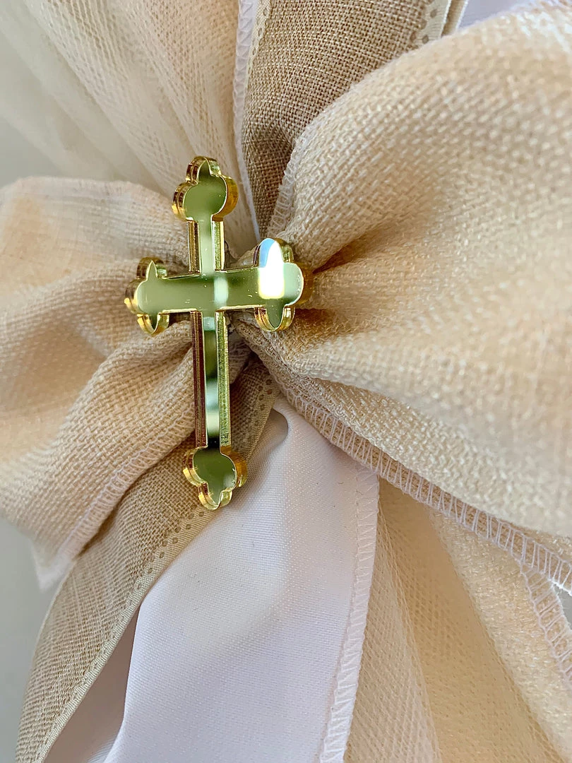 Natural and Gold Upright Bow Lambatha on 2ft candle. Price shown is per candle (1)