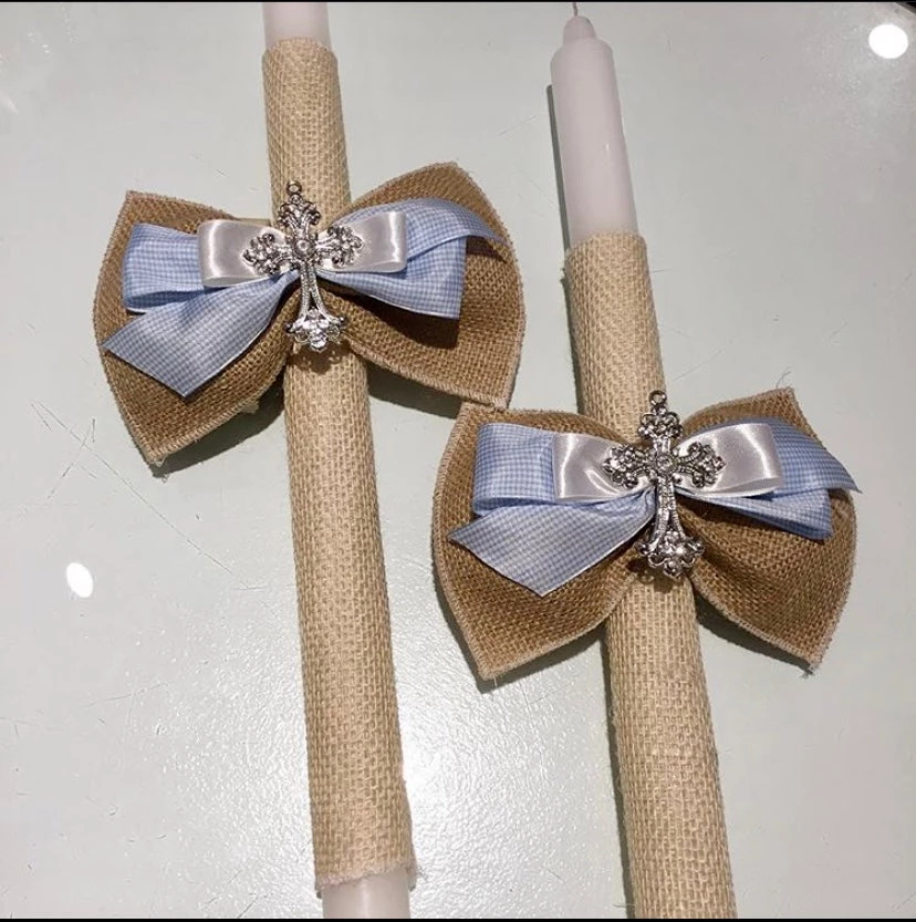 Burlap Baby Blue Lambatha on 2ft candle. Price shown is per candle (1)