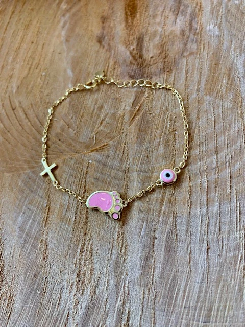Gold Baby Pink Foot Bracelet is imported from Greece. Sterling Silver Gold Plated 925.