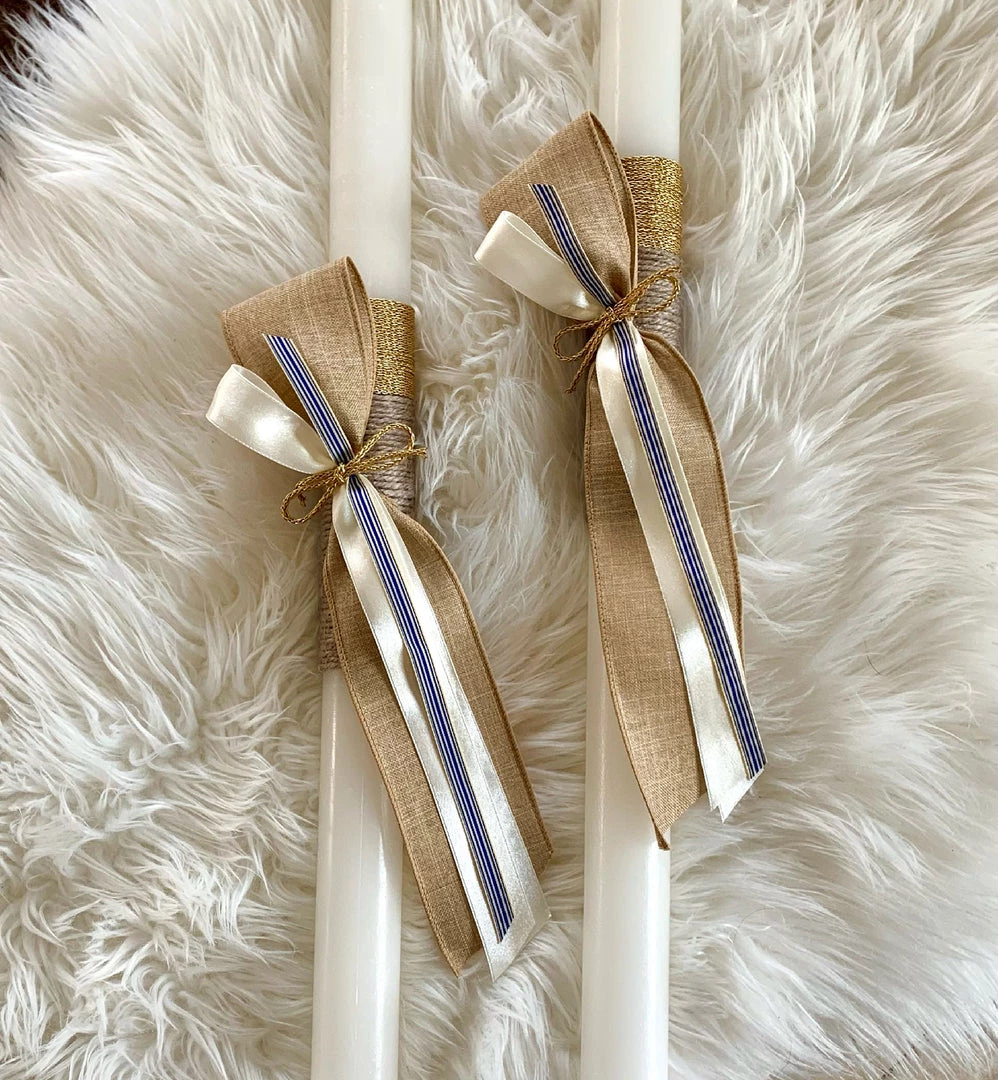 Gold Burlap and Navy Striped 3ft candle. Price shown is per (1) candle.