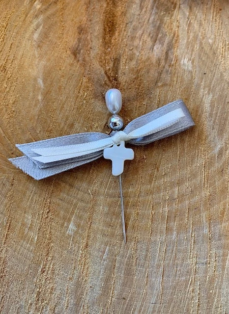 Martyika or witness pins are worn by guests in the Greek Orthodox Church by those who have witnessed the Baptism of a child.