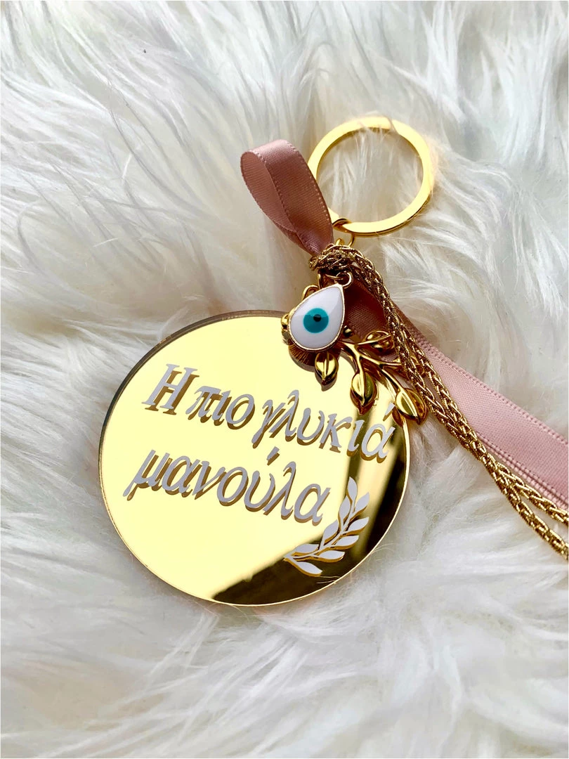 KaterinasDesigns H Pio Glukia Manoula / The Sweetest Mom Gold Mirror Keychain