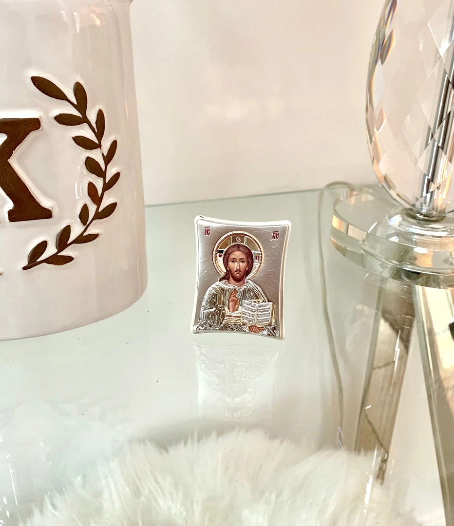 Christ Icon Imported from Greece. Sterling Silver. Dimensions: 4.3 x 5.4 cm