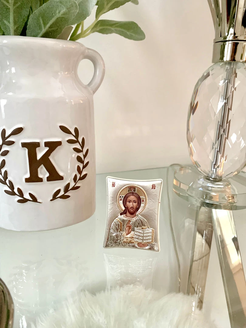 Christ Icon Imported from Greece. Sterling Silver. Dimensions: 5.5 x 7.0 cm