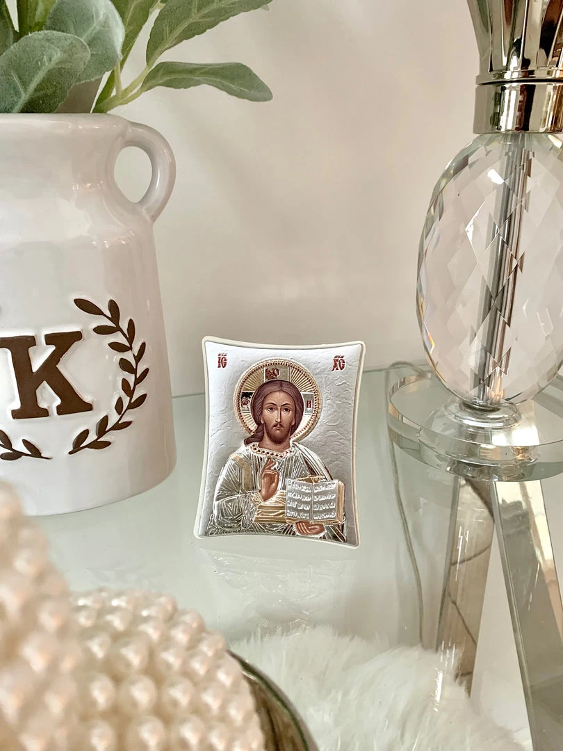 Christ Icon Imported from Greece. Sterling Silver. Dimensions: 8 x 9 cm