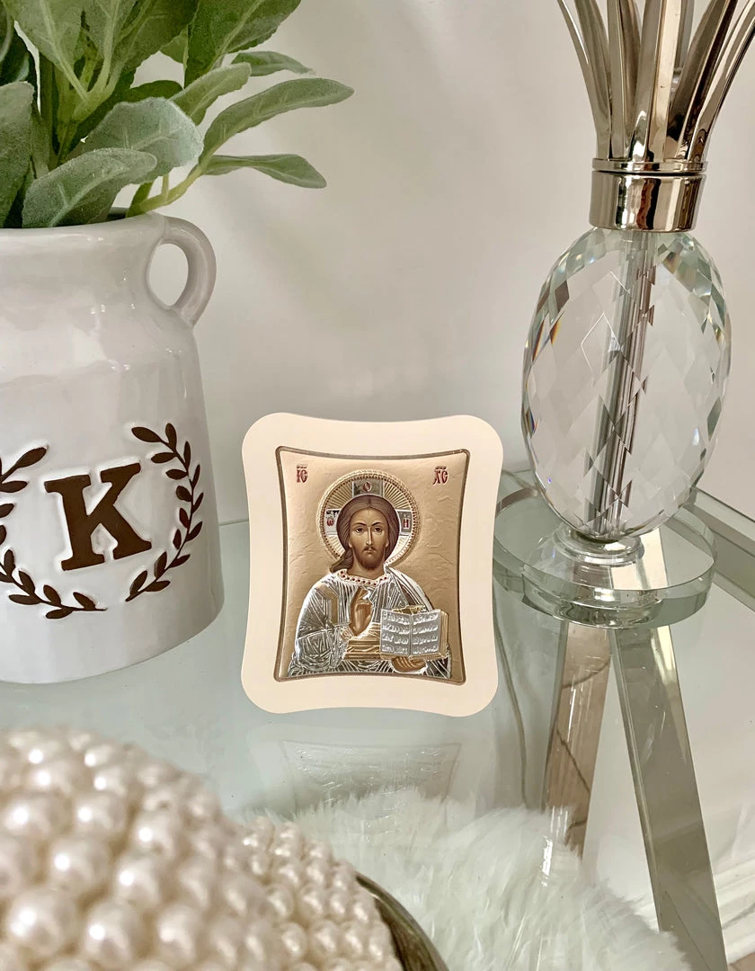 Gold Christ Icon Imported from Greece. Sterling Silver. Dimensions: 11.0 x 12.9 cm