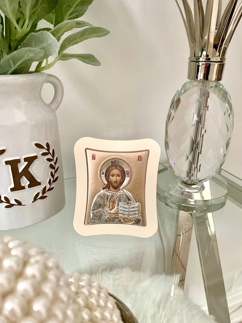 Rose Gold Christ Icon Imported from Greece. Sterling Silver. Dimensions: 11.0 x 12.9 cm
