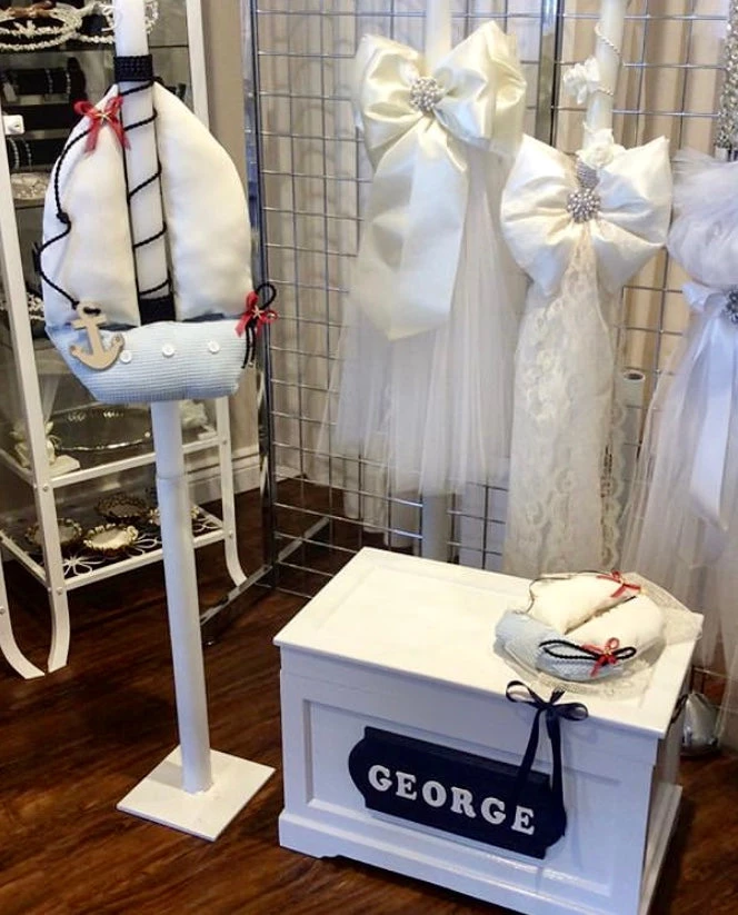 Large White & Blue Nautical Boat Lambatha on 3ft candle. Price shown is per candle (1)