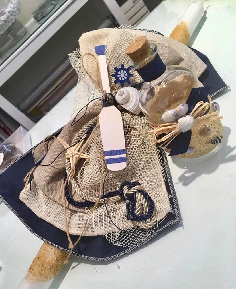 Navy Nautical Lambatha on 2ft candle. Price shown is per candle (1)