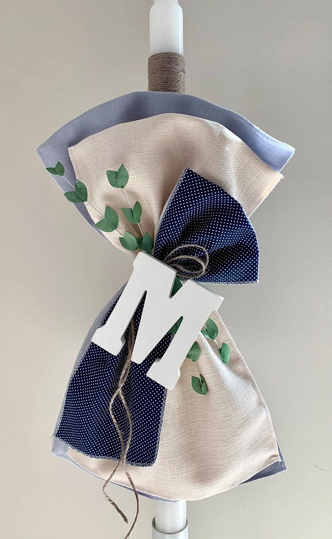 Personalized Polka Dot Olive Vine Lambatha on 3ft candle. Price shown is per candle (1)