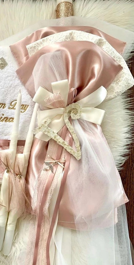 Rose Gold Lace and Crystal Personalized Lambatha on 3ft candle