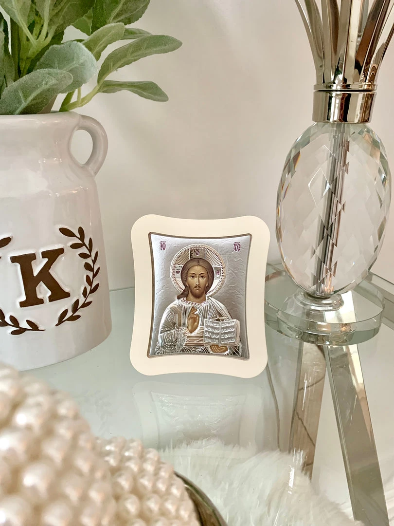 KaterinasDesigns Silver Christ Icon 11.0 X 12.9 Cm