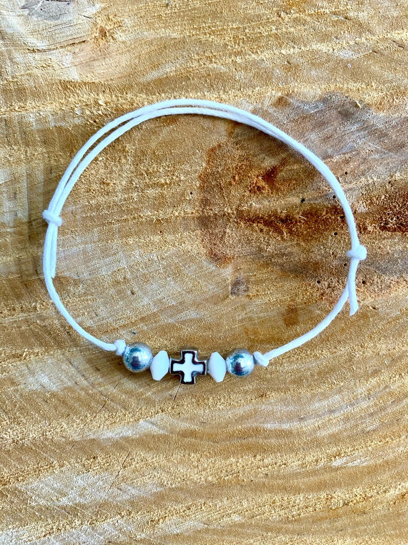Martyiko includes 2 silver beads, 2 white beads, and white cross.