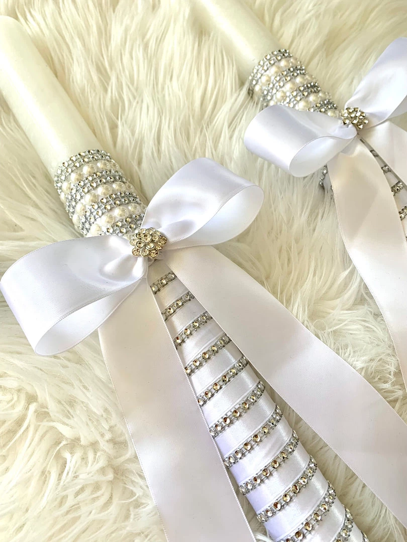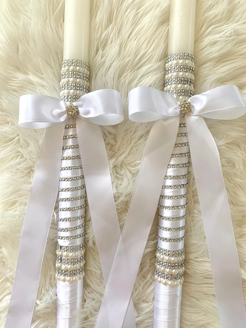 White Diamond and Pearl Lambatha on 4ft candle. Price shown is for 2 candles