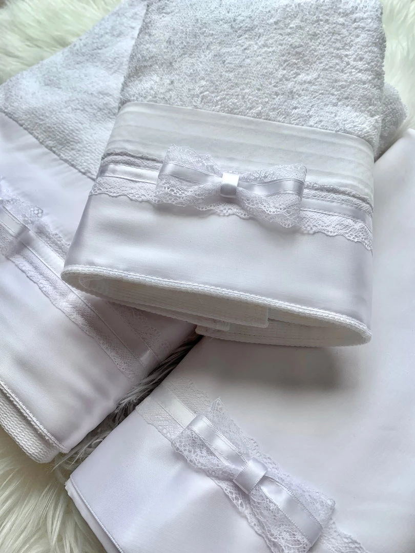 Custom Made Ladopano Set. Set includes one (1) big bath towel, one (1) Oil Sheet, one (1) Hand Towel, one (1) onesie, and one (1) oil hat.
