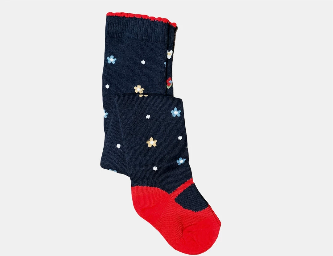 Thick woven tights for baby girl with elasticated waist for a better fit. These are a versatile accessory which can be easily combined with other garments to complete a range of looks. Made from soft elasticated cotton fabric. Decorative elements: decorative designs. Polka-dot pattern.