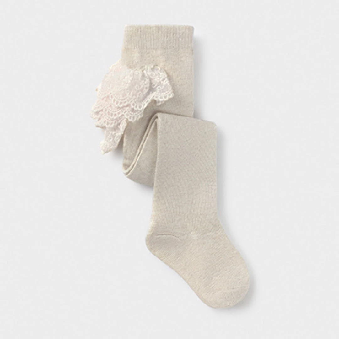 Thick woven tights for baby girl with elasticated waist for a better fit. These are a versatile accessory which can be easily combined with other garments to complete a range of looks. Made from soft elasticated cotton fabric. Decorative elements: decorative ruffles.