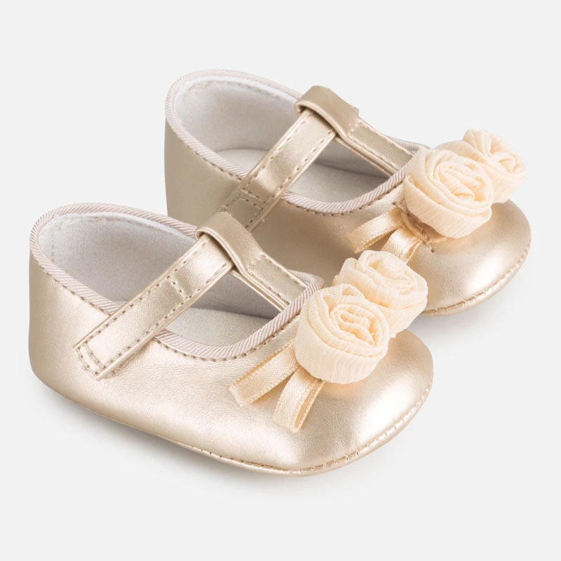 Mayoral Soft Sole Shoe in Golden imported from Spain. Shoes with inner lining and breathable cotton insole. Adjustable velcro strap which guarantees a perfect fit.