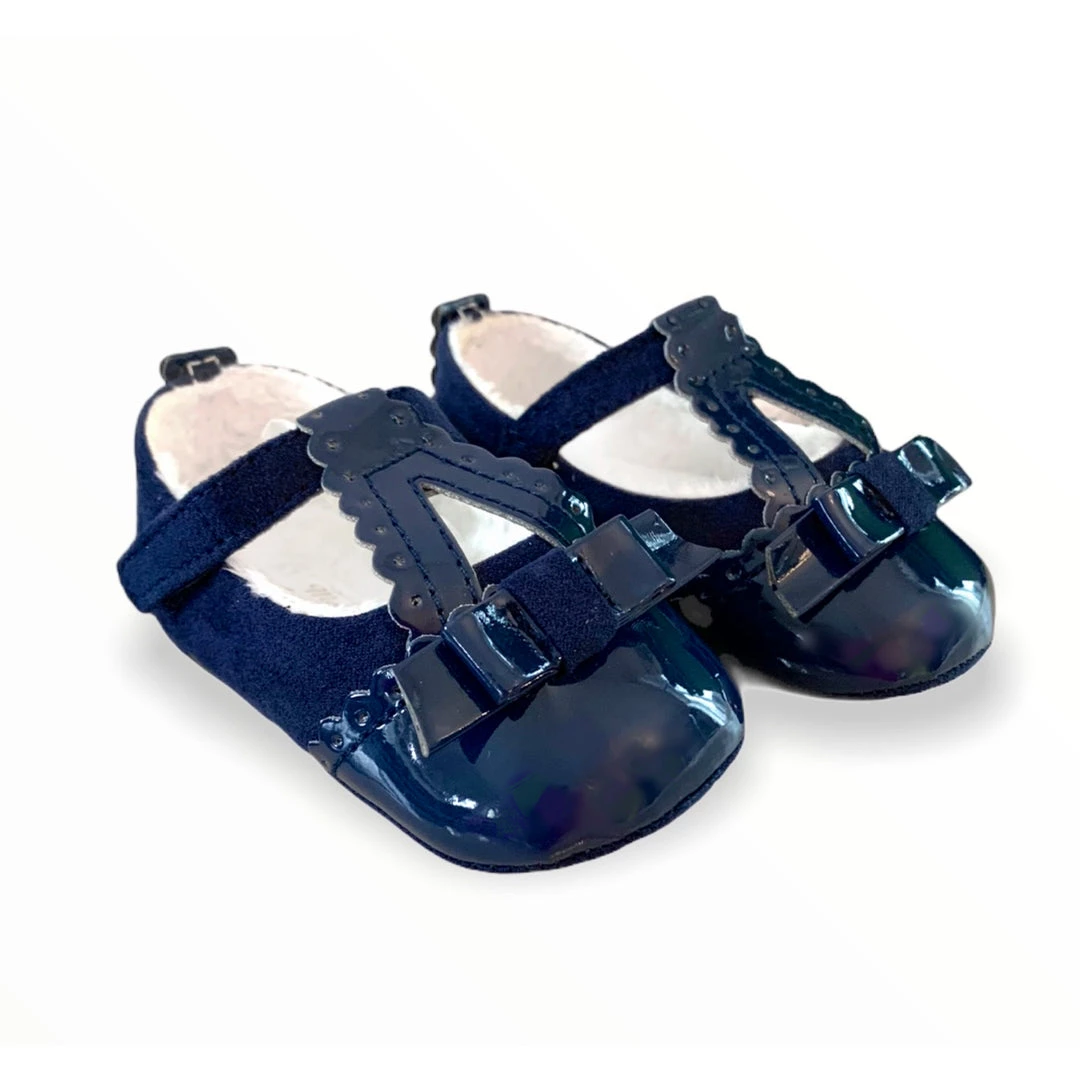 Pump style shoes for newborn girl aged 0 to 18 months – a timeless, classic style to go with elegant outfits. Decorative elements: bow applique. This item comes presented in a box from the Newborn collection, ideal to be given as a gift on special occasions