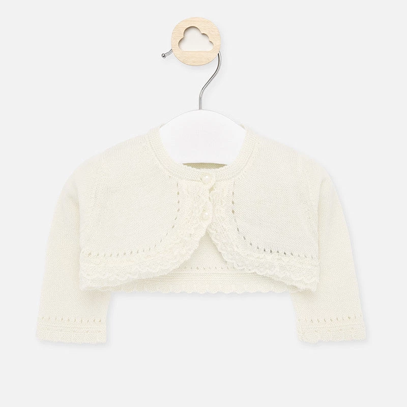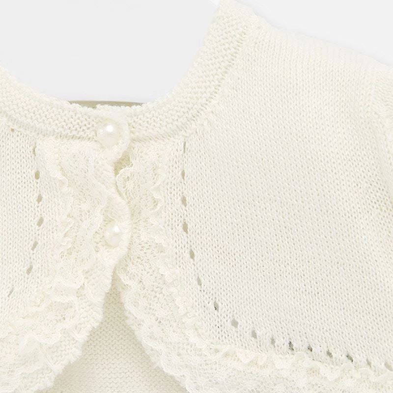 Long sleeved Cardigan with detailing in a contrasting color for newborn baby girl. Made from 100% cotton fabric.