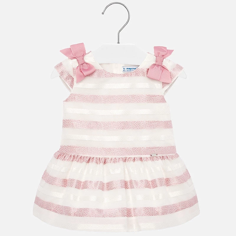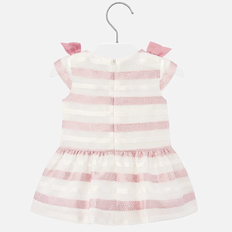 Mayoral striped pink dress made from warm, elegant and sophisticated fabric to wear on the most special occasions. Includes an inner lining. Dress fabric: 96% Polyester, 4% Metallic Fiber. Interior Lining: 100% Cotton