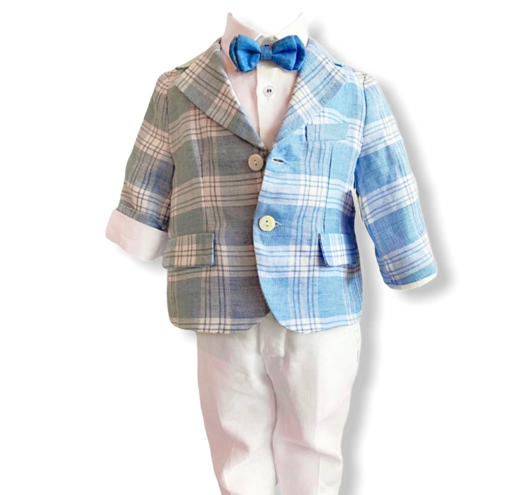 Boys 4 piece Linen Blue Checkered Baptismal outfit imported from Italy.